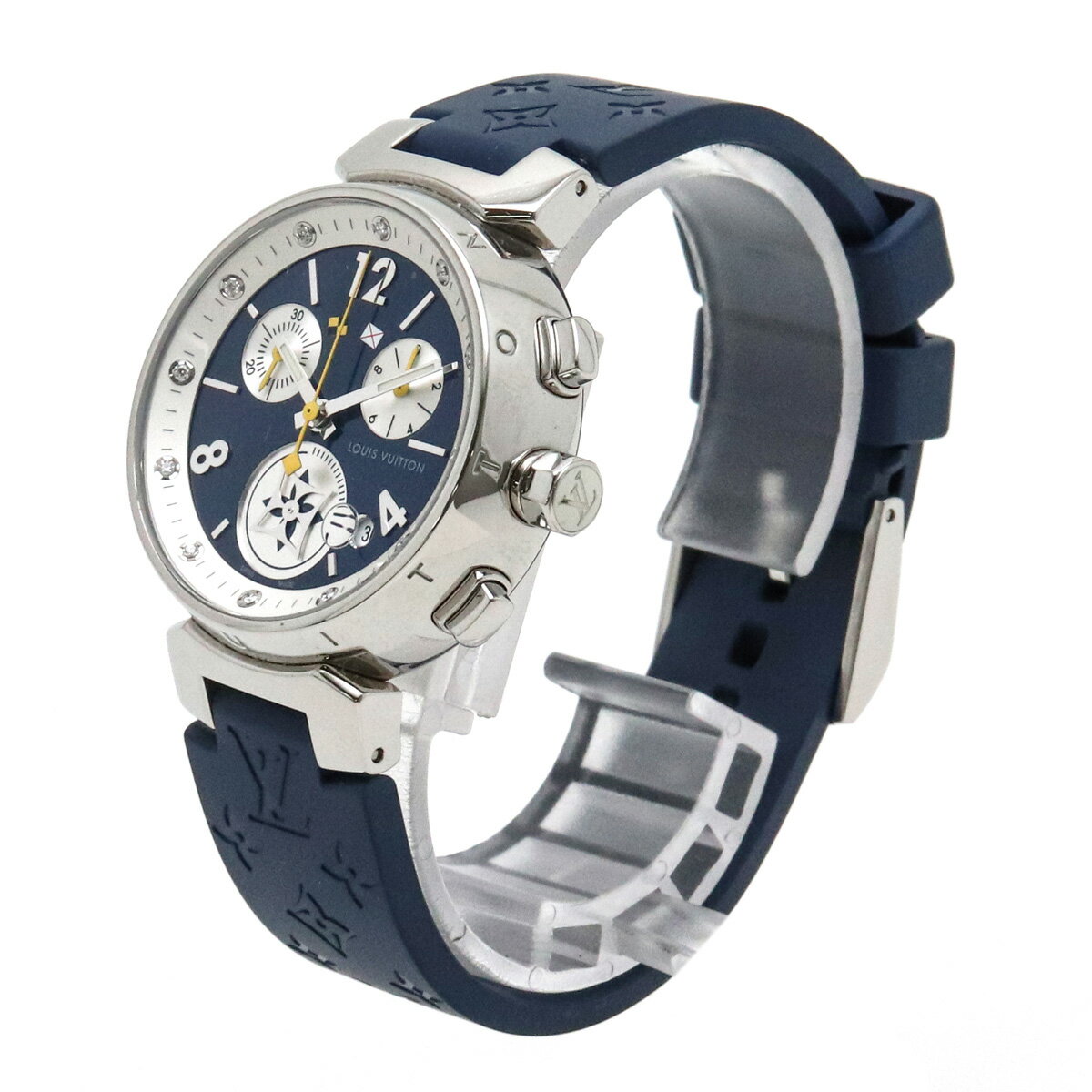 商品詳細 ケースサイズ W33mm(リューズ除く) H42mm(ラグ含む)ブレスサイズ 13.5-17.5cm材質 SS/ラバー/12Pダイヤモンドムーヴメント クオーツ/電池式文字盤カラー ネイビー仕様 100m防水型番 Q132D付属品 外箱 内箱 保証書 カード 取扱説明書 コンディション 程度 中古S ケース 目立つダメージなしブレス 目立つダメージなし特記事項 製造番号 TJ1956 コメント 上品でカジュアルにも仕様出来るお時計です。