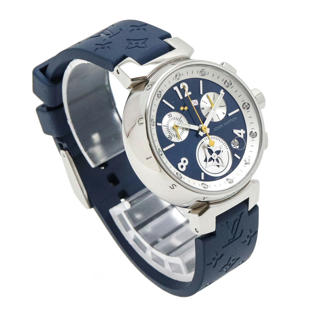 商品詳細 ケースサイズ W33mm(リューズ除く) H42mm(ラグ含む)ブレスサイズ 13.5-17.5cm材質 SS/ラバー/12Pダイヤモンドムーヴメント クオーツ/電池式文字盤カラー ネイビー仕様 100m防水型番 Q132D付属品 外箱 内箱 保証書 カード 取扱説明書 コンディション 程度 中古S ケース 目立つダメージなしブレス 目立つダメージなし特記事項 製造番号 TJ1956 コメント 上品でカジュアルにも仕様出来るお時計です。