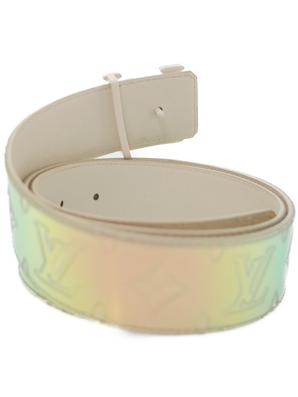 【LOUIS VUITTON】【ヴァージル・アブロー】ルイヴィトン『サンチュール LV シェイプ 40MM』M0219V メンズ ベルト 1週間保証【中古】 名 称 サンチュール LV シェイプ 40MM 型 番 M0219V タイプ メンズ カラー シルバー 種 類 ベルト 材 質 透明なモノグラムのエンボスを施したPVC素材×レザー サイズ 表記サイズ:85/34 全長約103cm 最短約80cm、最長約90cm 5穴 幅約4cm 付属品 保存袋 保証期間 1週間保証 ランク AB品 状 態 使用感やダメージは見られますが全体的に状態の良い中古商品です。