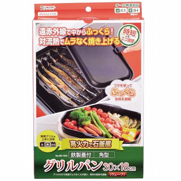 ラクッキング鉄製蓋・ハンドル付角型グリルパン30×18cm[ウェーブ][HB-1955]/【ポイント 倍】